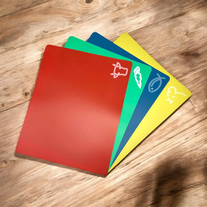 Яскраві різнокольорові гнучкі пластикові дошки під різні харчові продукти. Особливий пружний і разом з тим м’який матеріал дошки захищає керамічний ніж при роботі,в упаковці 4шт.