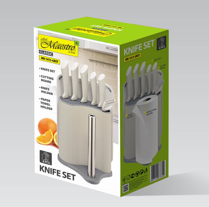 MR-1413 Grey Набір ножів+оброб.дошка+підставка+тримач паперу 8пр/наб Maestro