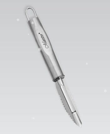 Овочечистка з нержавіючої сталі Maestro MR 1717 розміром 22х2,4х2,0 см призначена для безпечного чищення овочів від шкірки. Спеціальна конструкція леза дозволяє швидко та зручно видаляти шкірку з овочів та фруктів, виключаючи при цьому можливість порізати пальці.