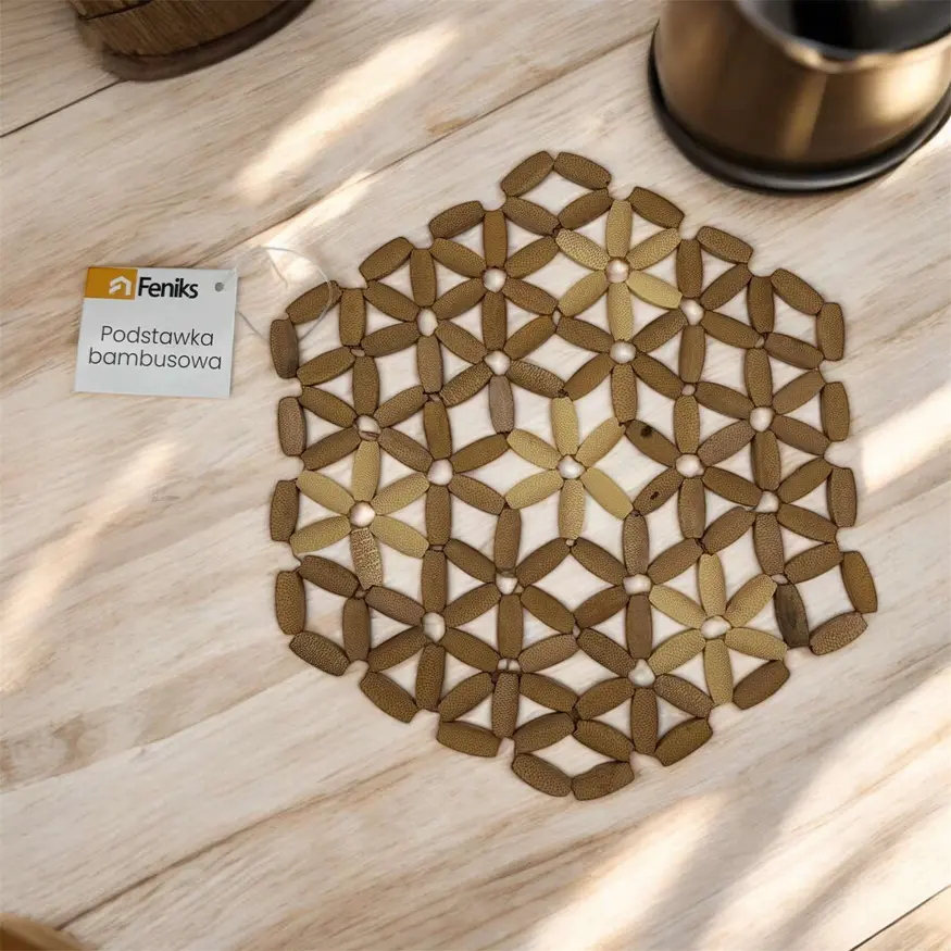 Міцна якісна конструкція зі 100% натурального бамбука. Екологічно чистий бамбук. Довговічний і легкоочисний. Захищає поверхні столу та стільниці від гарячого посуду.