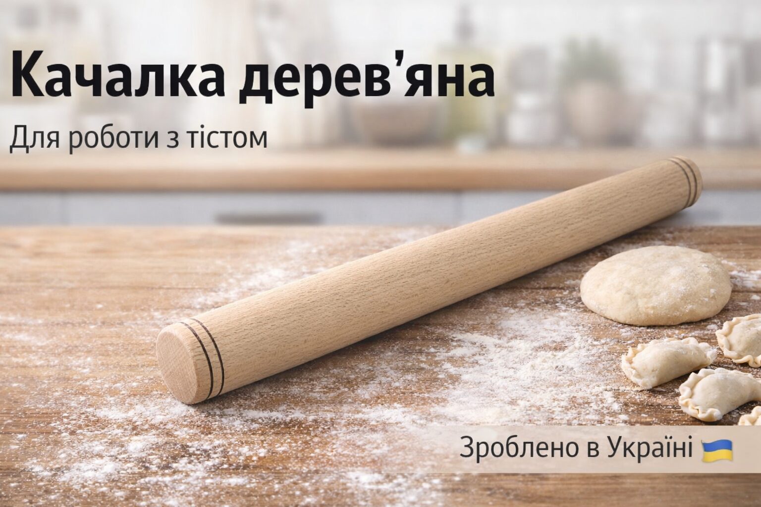 Качалка для тіста, зроблена з цільного куска деревини.