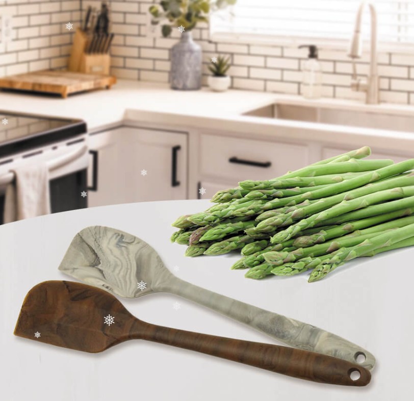 Лопатка без прорізів Maestro MR 1153. Новинка з цікавим дизайном неодмінно займе почесне місце на вашій кухні. Дана лопатка випускається в двох варіантах. Для любителів сірого кольору і інтер’єру з імітацією каменю, є варіант з відтінком граніту. Зовні, здається що лопатка дійсно кам’яна. Для більш класичного стилю можна придбати силікон, який імітує темне дерево з розлученнями, така лопатка спокійно впишеться в дерев’яні аксесуари, виглядає дорого і стильно.