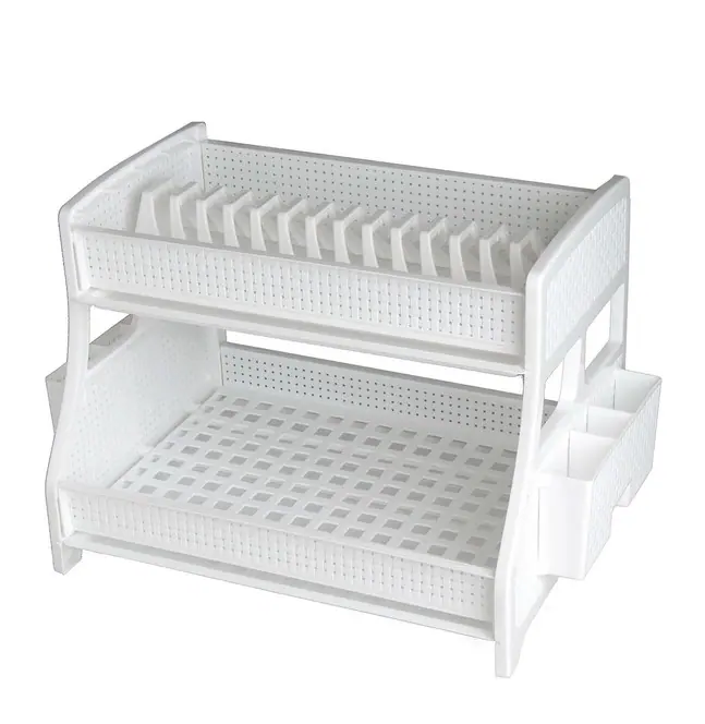 Сушка для посуду зручна і компактна, істотно економить місце на кухні, можна розмістити на столі, в шафі або іншій зручній поверхні. Сушка виготовлена з якісного пластика, має два яруси, один для тарілок, інший для чашок і склянок,також є відсіки для столових приладів.