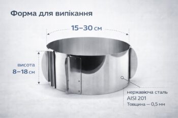 Розсувна форма “коло” призначена для складання тортів, заливати суфле, десерти, дозволяє выпикать кондитерські вироби, бісквіти.