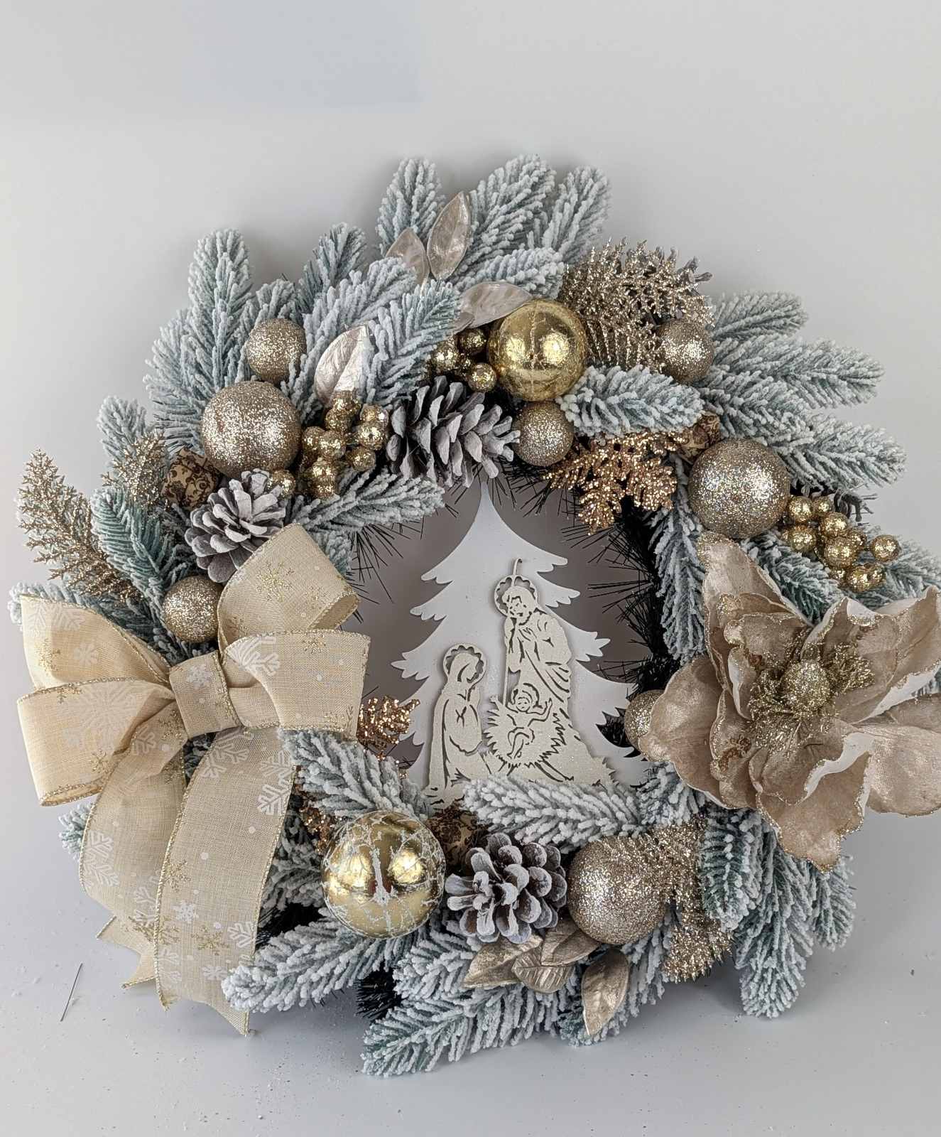 Головна Каталог Новорічні товари Новорічний декор Вінок новорічний литий з квіткою золото d 40см
