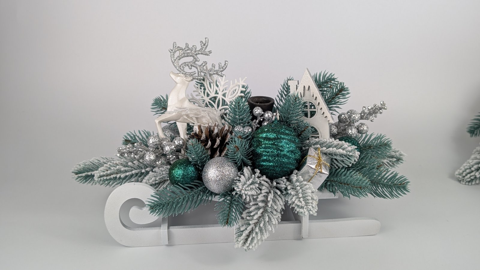 Головна Каталог Новорічні товари Новорічний декор Підсвічник новорічний сани смарагд 40*22*22см
