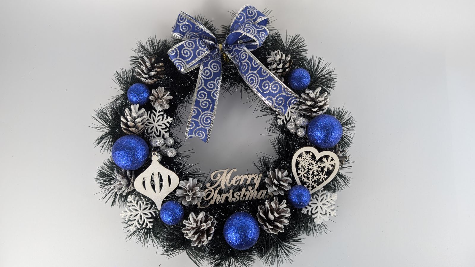 Вінок новорічний на двері синій d 38см