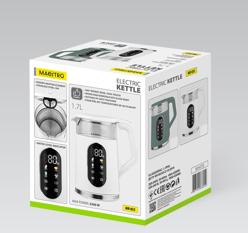 MR-023-WHITE Ел.чайник 1,7л,1800-2200 Вт сенс.панель Maestro