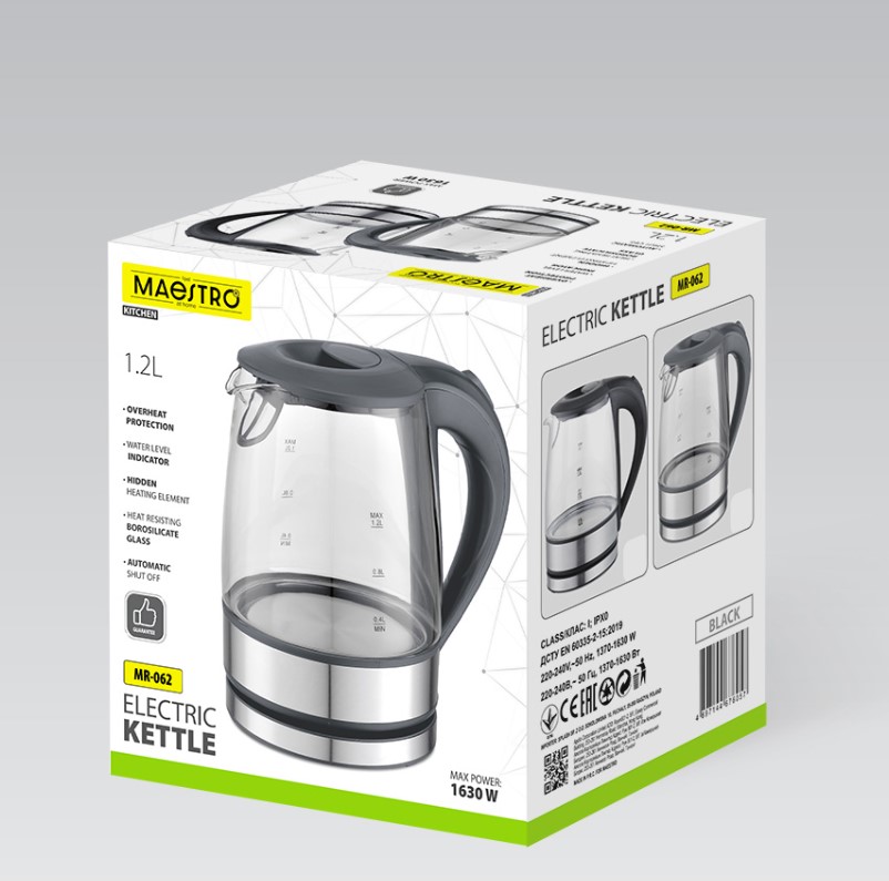 MR-062-GREY Ел.чайник скло 1.2л 1630ВТ Maestro