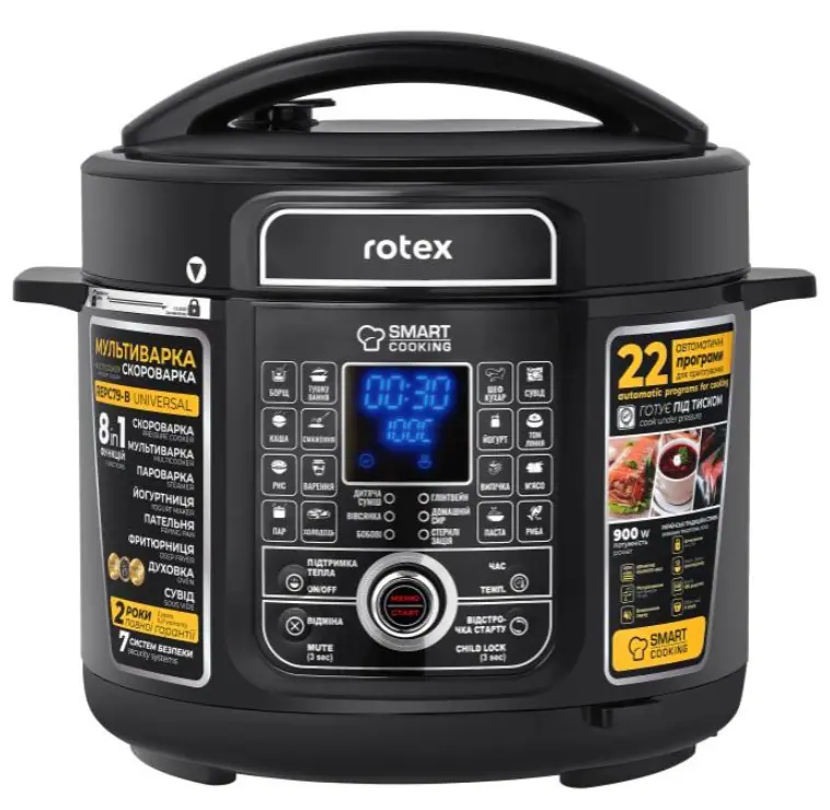 Головна Каталог Побутова техніка Мультиварки Мультиварка-скороварка REPC 79-B 900W Rotex #