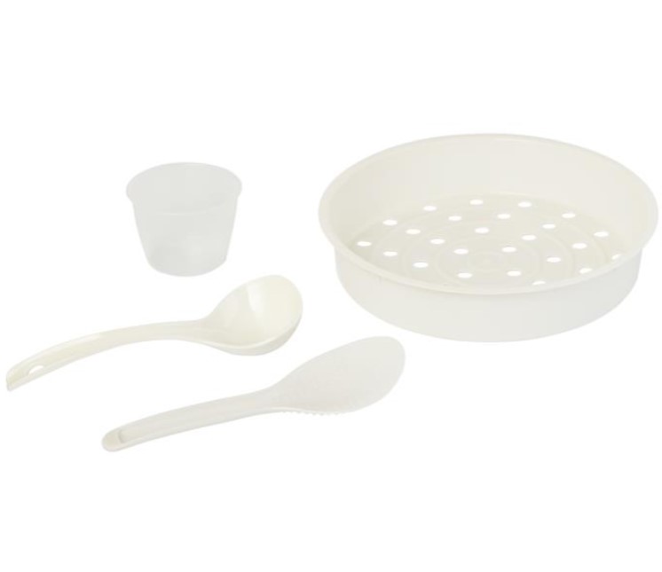 У комплекті: пластикова пароварка, ложка, ополоник, мірний стакан, кришка для чаші за харчового пластику, книга рецептів (120 рецептів).