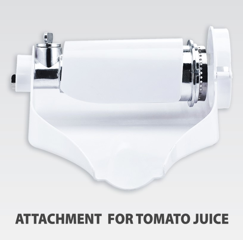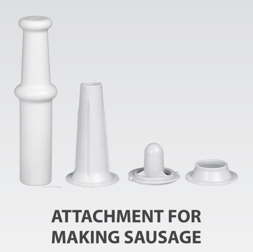 У комплекті поставляються насадки для приготування ковбас, томатного соку, насадка Kebbe, 2 диска для подрібнення з отворами різних діаметрів.