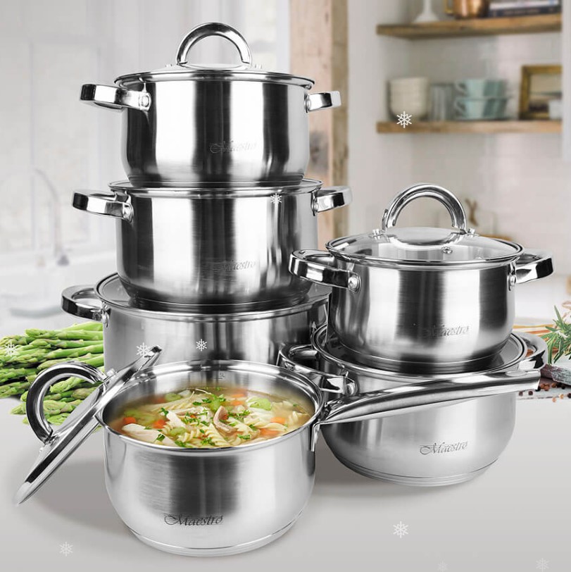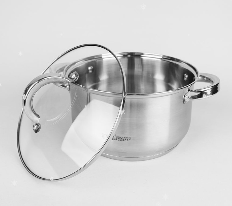 Maestro MR 2120 – це набір посуду складається тільки з каструль і ковша з кришками без сковорідки. Посуд виготовлений з високоякісної нержавіючої сталі 18/10. Багатошарове термоакумулююче дно підходить для всіх джерел тепла включаючи індукцію.