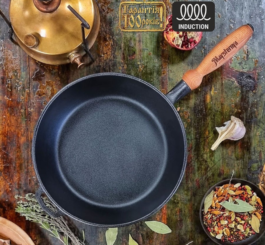 Сковорода чавунна Maysternya з дерев’яною ручкою