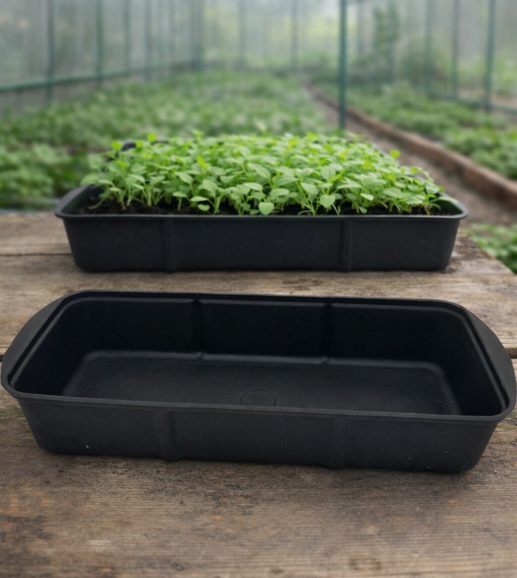 Піддон для розсади 38x16x6см – Пластиковий лоток чорного кольору для вирощування розсади овочів, ягід та інших культур