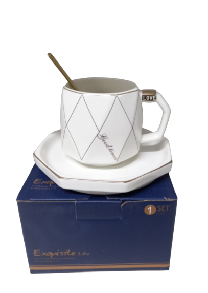 2402 Кружка кераміка з блюдцем та ложкою 250мл Interos