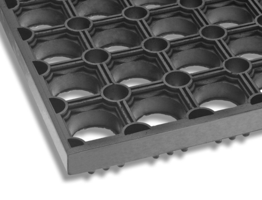 Килимок гумовий соти К-24м прямокутної форми, призначений для використання всередині і зовні приміщення, а також для захисту від бруду і снігу. Прогумована основа надійно утримує килимок на будь-якій поверхні, будь то паркет, ламінат, керамічна плитка або лінолеум, при цьому, не дряпаючи і не пошкоджуючи її. Завдяки тому, що килимок соти не ковзає по поверхні, його можна використовувати на кухні в кафе, на автомийці і на заводі біля верстатів. Гумовий килимок виготовлений з гуми стійкої до зносу і атмосферних впливів, не твердне при низьких температурах і не ковзає на вологій поверхні, тому може використовуватися в місцях з жорсткими умовами експлуатації і інтенсивним потоком людей. Купуючи придверний килимок або килимок в передпокій, Ви заощадити час на прибирання, його швидко і легко мити. При правильних умовах експлуатації гумовий килимок соти буде довго служити, не змінюючи зовнішній вигляд.