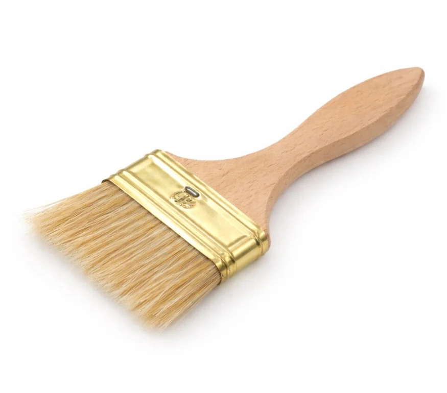 Ця флейцева кисть із шириною робочої частини 75 мм та натуральною щетиною забезпечує якісне нанесення та довговічність. Дерев’яна основа та металевий бандаж надають інструменту міцності, а зручна дерев’яна ручка з отвором для підвішування спрощує зберігання.