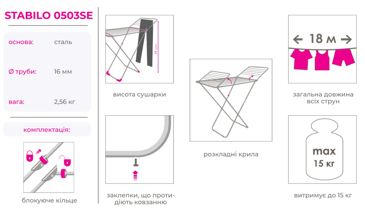 0503SE Сушка для білизни 18 м Stabilo 513.77 грн