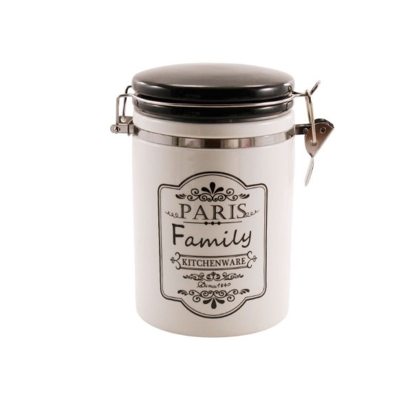Керамічна банка Париж із замком 500 мл— стильна і функціональна керамічна банка для кухні, що чудово підходить для зберігання сипких продуктів: круп, цукру, солі, кави, чаю та спецій.