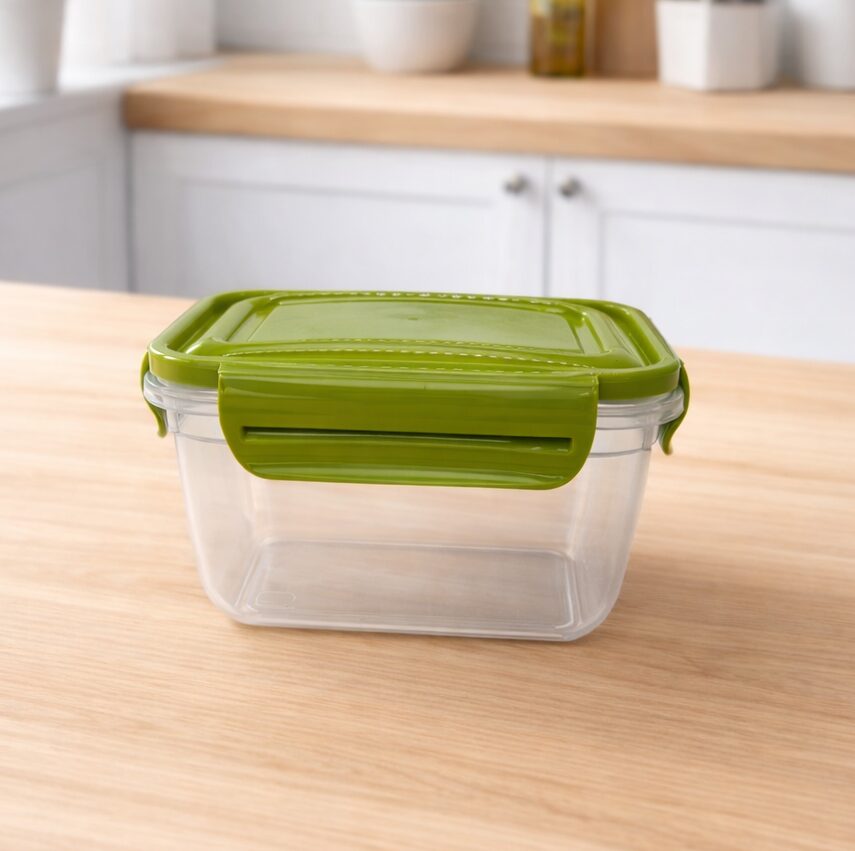 Герметична кришка на засувках повністю захищає вміст від протікань і допомагає зберігати свіжість продуктів.