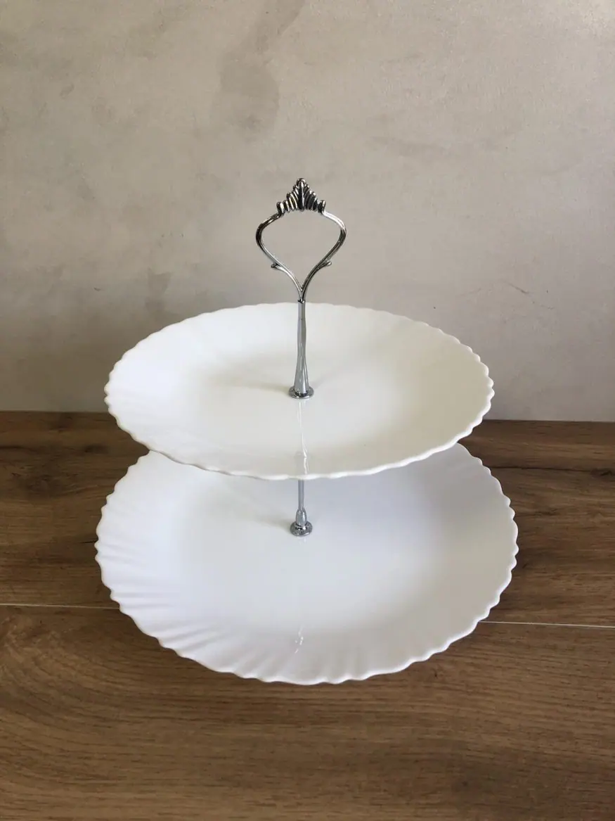Можна використовувати як на великих заходах, так і в домашніх умовах для різноманітних варіантів сервірування фруктів, горіхів, солодощів та інших закусок. Двоярусне виконання робить фруктівницю більш компактною та зручною для розміщення на столі, заощаджуючи простір.