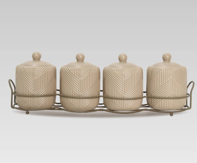 Головна Каталог Посуд для зберігання Кераміка MR-20004-04CS Набір для спецій 5пр. Geometry Beige Maestro