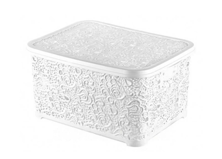 Кошик для зберігання з кришкою, є дуже містким виготовлений з гіпоалергенного матеріалу – поліпропілен Турецького виробництва. Висока міцність матеріалу до механічних та хімічних впливів. Використовується для зберігання різного приладдя для дому: продуктів харчування, текстилю, іграшок та іншого. Відмінно підійде для сучасного інтер’єру, оскільки зовнішній корпус виконаний у вигляді незвичайного візерунка Ажур. Термін придатності не обмежений.